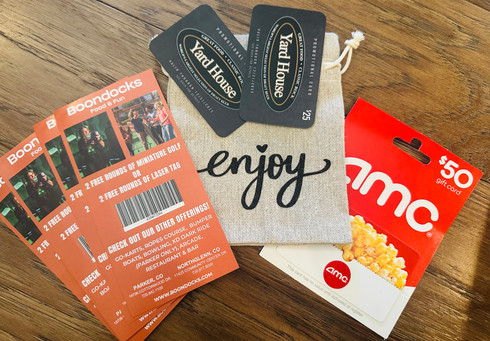 4 passes for 2 free rounds of minature golf or laser tag for 4 at Boondocks , $50 AMC Gift Card, $50 Yard House